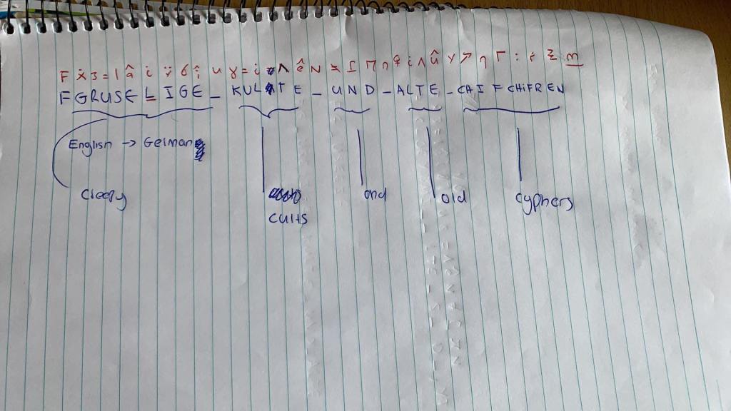 6. As the flag didn’t make sense, I tried converting some of the words to German considering the cipher was a German one. Google translated this to ‘creepy cults and old cyphers. Once wrapped in the flag, it resulted as RITSEC{creepy cults and old cyphers}.