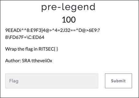 Between Nov 15 – Nov 18, I participated in my second CTF challenge, the RITSEC CTF. The overall competition was challenging in numerous ways but very rewarding. Our team of 3, including a team member participating in his first CTF, finished 236/900 teams. This CTF allowed me to explore new tools to use for challenge solving, including new cipher decoding tools and Linux commands. For this competition, I wanted to gain more experience in cryptography and concentrated my attention on that category. The following writeups focus on the challenges I solved.